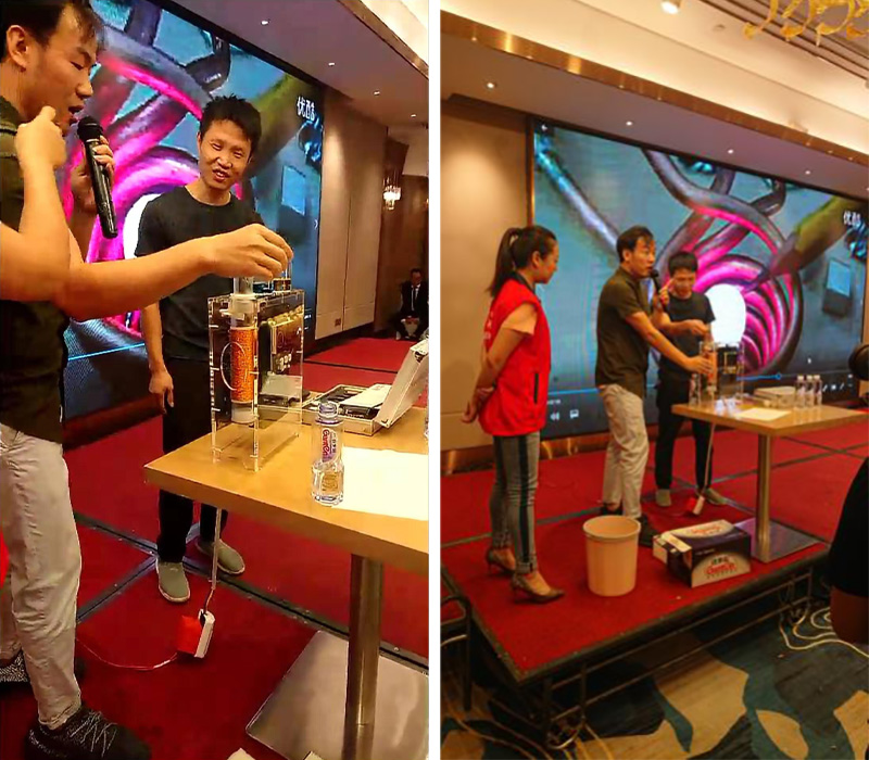 楊總說(shuō)的這些并非是官話套話,接下來(lái)他說(shuō)出了傳統(tǒng)熱水器的種種弊端,并心痛地表示為什么消費(fèi)者要忍受這些存在著那么多弊端的熱水器產(chǎn)品,接著他用高顏值、高科技、速熱殺菌且不會(huì)發(fā)生漏電事故的斯瑞斯特磁能熱水器產(chǎn)品對(duì)比市面上存在種種弊端的熱水器產(chǎn)品;還在現(xiàn)場(chǎng)抽到一位觀眾上來(lái)配合演示斯瑞斯特?zé)崴鳟a(chǎn)品的神器之處——速熱融鋼和磁化水質(zhì)(酸性水磁化后變堿性水),引來(lái)了現(xiàn)場(chǎng)觀眾人員的矚目與驚嘆。