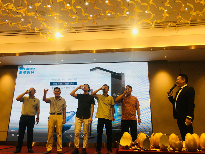 還是同樣的主持人,只是這次會(huì)場(chǎng)的主角并非是他。重頭戲即將開(kāi)始,主持人簡(jiǎn)單地說(shuō)了幾句開(kāi)場(chǎng)白就直奔主題——先是邀請(qǐng)了斯瑞斯特贛州旗艦店的王總上臺(tái)進(jìn)行深情致辭,他言簡(jiǎn)意賅地闡述了自己加盟斯瑞斯特的原因和初心:其實(shí)就是為了帶給贛州人民一個(gè)潔凈安全的水體驗(yàn),因?yàn)樗緛?lái)就是從事化工行業(yè)的,深諳水質(zhì)的好壞對(duì)人們生活的影響,跨行業(yè)開(kāi)店就是看準(zhǔn)了斯瑞斯特的熱水器可以將水變得潔凈無(wú)菌!現(xiàn)場(chǎng)的觀眾人員都為他有如此崇高的社會(huì)責(zé)任感所動(dòng)容。