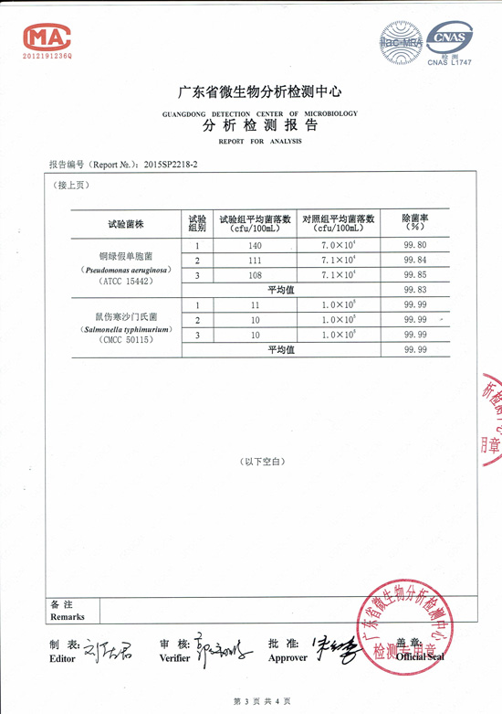 經(jīng)過(guò)中科院廣東省微生物檢測(cè)中心權(quán)威檢測(cè)四種生活中常見(jiàn)致病細(xì)菌: