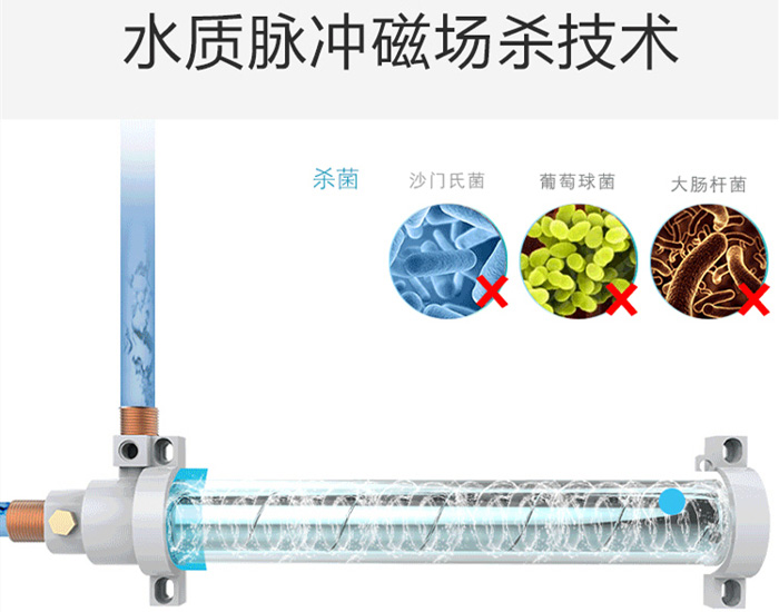 脈沖磁場殺菌技術,保護肌膚。斯瑞斯特引進德國食品級磁能殺菌技術,將其運用到了熱水系統中,保證了經過磁能加熱的水殺菌率在99.8%。