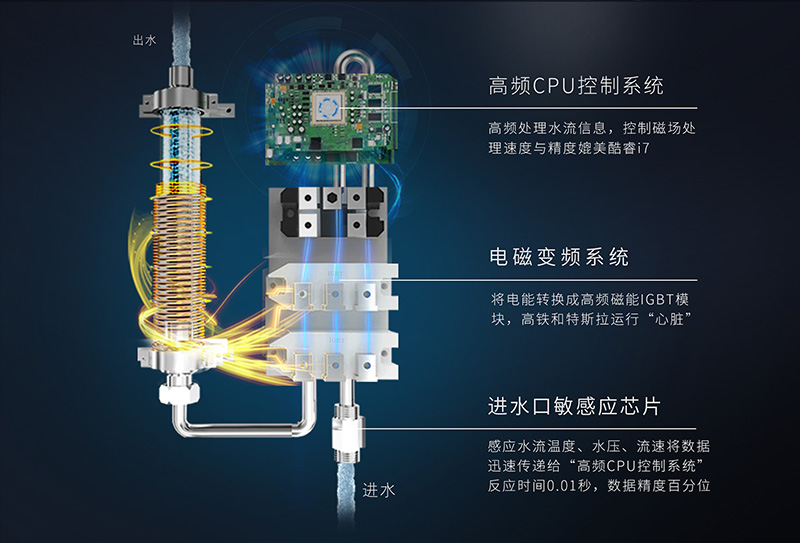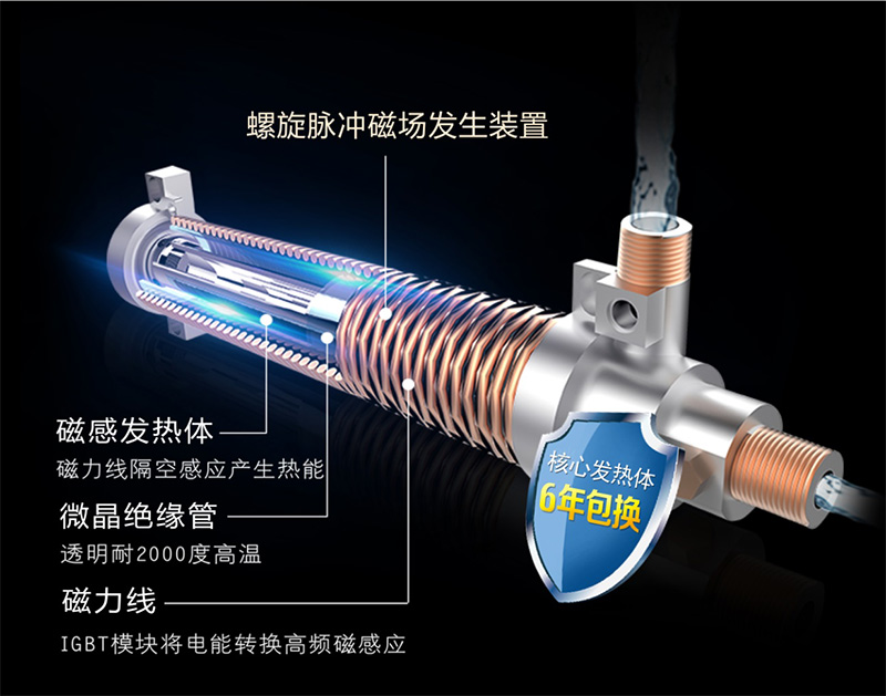 速熱安全聚于“芯”。斯瑞斯特磁能淋浴屏智能款的核心優(yōu)勢在于速熱安全,強(qiáng)大而穩(wěn)健的原因就在于其強(qiáng)大的“內(nèi)芯”:螺旋脈沖磁場發(fā)生裝置,這個(gè)裝置運(yùn)用了磁感應(yīng)加熱原理,機(jī)器通電后,這個(gè)裝置會(huì)生成高頻強(qiáng)磁場,對(duì)經(jīng)過磁場的水流進(jìn)行極速加熱,據(jù)統(tǒng)計(jì),從打開機(jī)器到出現(xiàn)熱水僅需兩秒;這個(gè)“內(nèi)芯”被一件“外衣”——高溫微晶絕緣體所包裹著,在加熱的過程中,將水和電完全隔離開來,杜絕漏電發(fā)生的可能性。