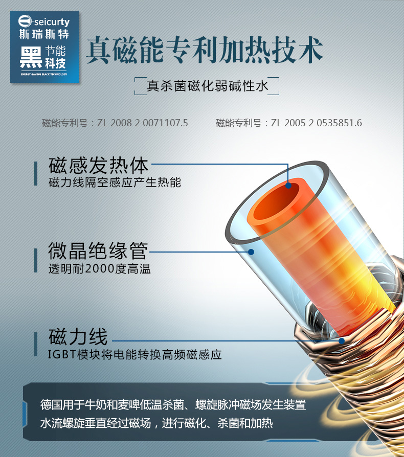 斯瑞斯特也將重點(diǎn)放在熱水器使用健康、安全方面上,研發(fā)出的磁能熱水器更健康,用得更放心。斯瑞斯特的磁能熱水器采用脈沖殺菌技術(shù),讓您樂享無菌生活,50HZ超聲波磁場,強(qiáng)力凈化水中雜質(zhì),多路減少細(xì)菌,讓洗浴更干凈,又延長整機(jī)壽命。更重要的一點(diǎn)是,斯瑞斯特磁能熱水器是水電分離加熱的,無需安裝防電墻也一樣安全。