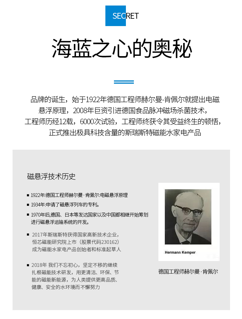 公司07年已經(jīng)提出了“磁能健康水家電”的產(chǎn)品概念,08年巨資引進德國工業(yè)級和食品級磁能技術(shù),經(jīng)過多年嚴謹?shù)募夹g(shù)開發(fā)和反復實驗...【查看更多】